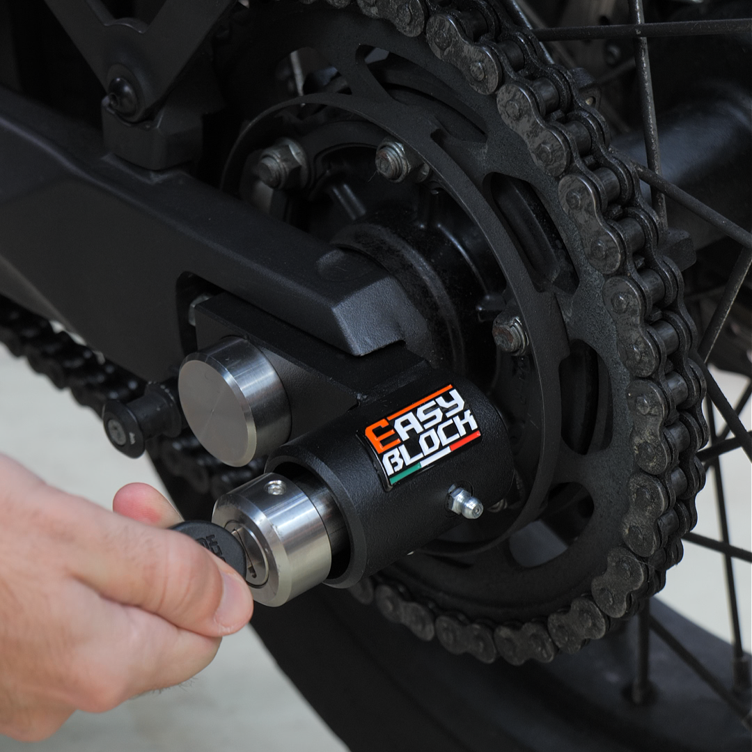 Abbiamo sviluppato EasyBlock per azzerare questo problema. È l'antifurto meccanico progettato su misura per integrarsi al posteriore della tua moto.